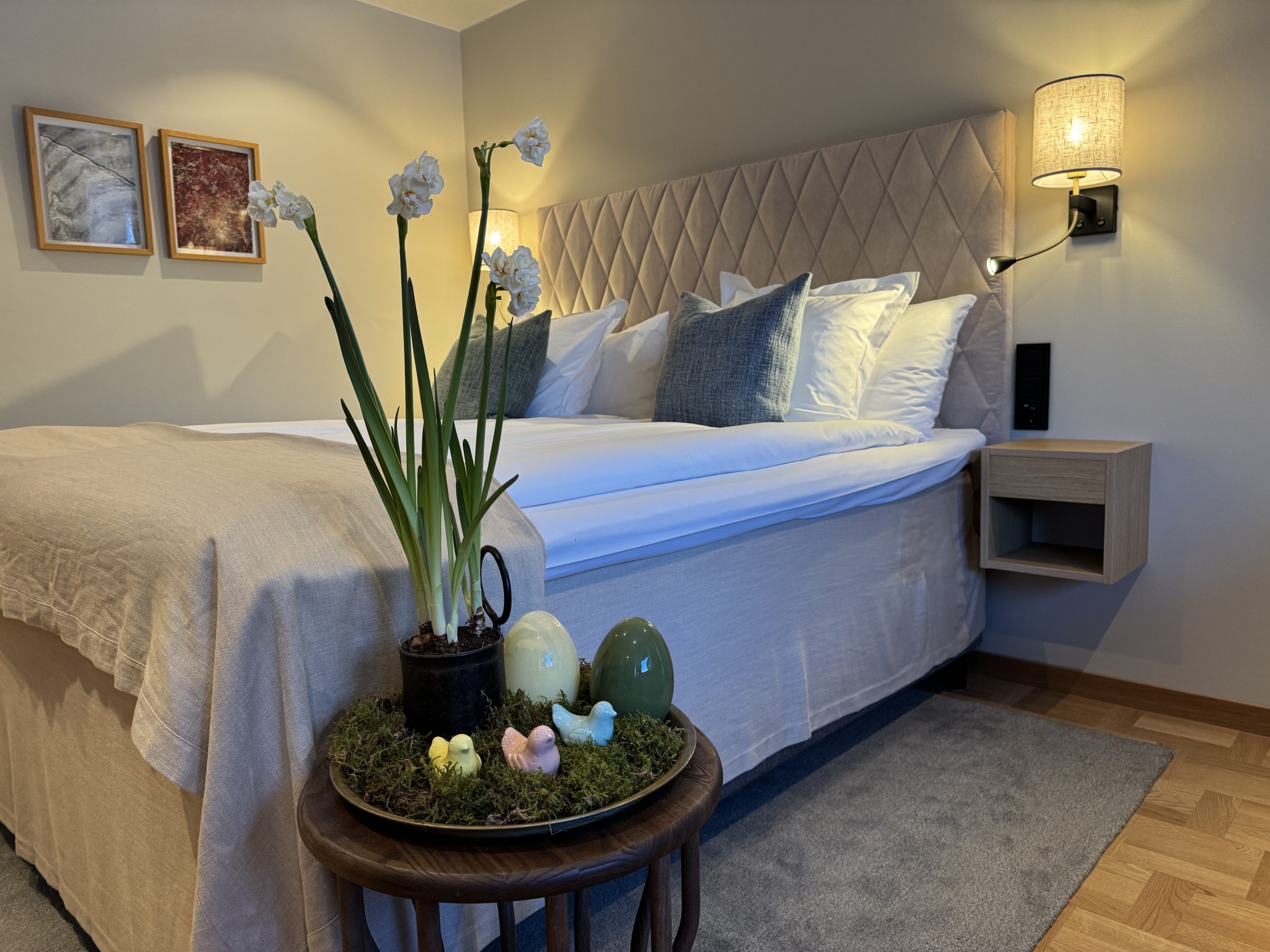 Checka in, skåla i en välkomstdrink och landa i stillheten. På rummet väntar en överraskning till er, badrock och tofflor. Under kvällen serveras en påskinspirerad 2-rättersmiddag komponerad av säsongens råvaror. Koppla av i vår relax med bastu, varma spabad utomhus och vinterbad från bryggan. Morgonen därpå väntar en generös frukostbuffé.
