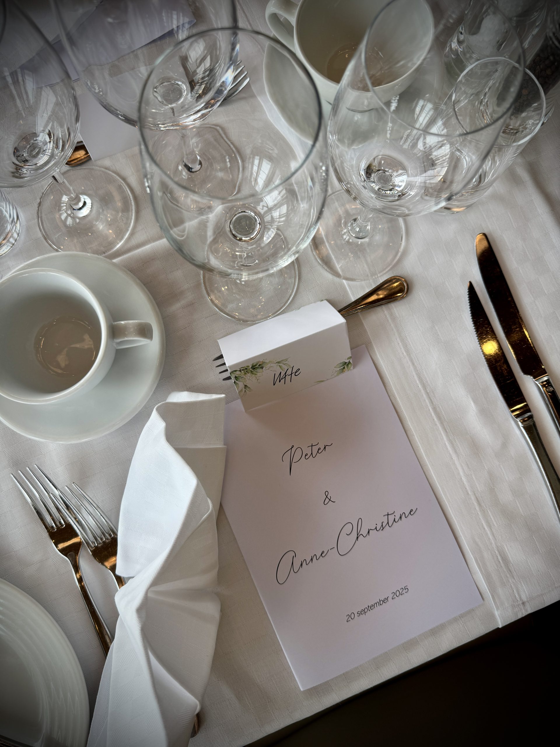 För att vi ska kunna genomföra bröllopsarrangemang vill vi att ni är minst 60 middagsgäster.
